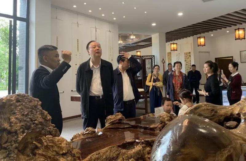 茅主任饒有興致地參觀了一樓文化展廳,不時駐足觀看和品評陳列的文創展品,認真聽取關于和合書院、臺州市唐詩之路研究院成立的詳細匯報,并與大家一起觀看企業宣傳片。