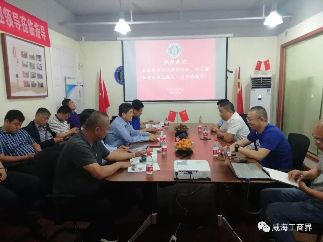 在寧波山東商會,會長張勇向考察團一行介紹了商會基本情況及黨建工作特色,陳文同志通報了威海市通過舉辦“威商大會”等有效載體,開展“雙招雙引”的具體做法,并通過山東商會向在外客商發出來威投資興業的真誠邀請。
