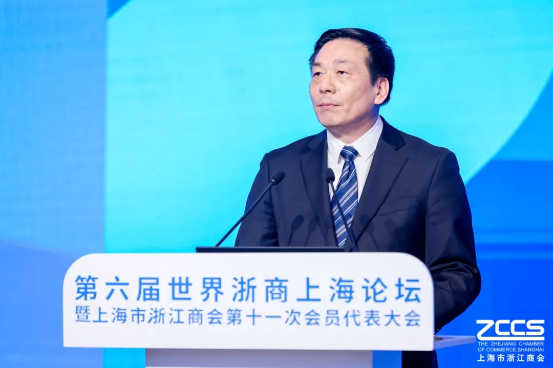 上海市委常委、統(tǒng)戰(zhàn)部部長 陳通 上海市委常委,統(tǒng)戰(zhàn)部長陳通在致辭中說,要以習(xí)近平新時(shí)代中國特色社會(huì)主義思想為指導(dǎo),學(xué)習(xí)貫徹習(xí)近平總書記關(guān)于民營經(jīng)濟(jì)發(fā)展的一系列重要講話精神,學(xué)習(xí)宣傳全國兩會(huì)精神,堅(jiān)定信念,專心致志謀發(fā)展。上海一直就是浙江人打拼發(fā)展之地,浙商的“四千”精神與上海城市精神品格珠聯(lián)璧合、相得益彰、融為一爐。浙商是一支宏大的聽黨話跟黨走的愛國力量、宏大的社會(huì)主義事業(yè)的建設(shè)力量、宏大的全體人民共同富裕的推進(jìn)力量。在滬浙商聯(lián)結(jié)浙江和上海,有力促進(jìn)長三角更高質(zhì)量一體化發(fā)展,為上海經(jīng)濟(jì)社會(huì)發(fā)展做出了重要貢獻(xiàn)。他希望廣大民營企業(yè)家抓住上海強(qiáng)化“四大功能”,建設(shè)“五個(gè)中心”,實(shí)施長三角一體化發(fā)展、浦東引領(lǐng)區(qū)、虹橋國際開放樞紐等重大國家戰(zhàn)略等有利機(jī)遇,施展才華、建功立業(yè)。他說,你們奔赴上海,上海擁抱你們;你們?cè)虾?,上海愛護(hù)你們;你們投資上海,上海成就你們。期待上海浙江商會(huì)更好發(fā)揮平臺(tái)作用,團(tuán)結(jié)服務(wù)在滬浙商,努力建設(shè)成為模范商會(huì)、標(biāo)桿商會(huì)。