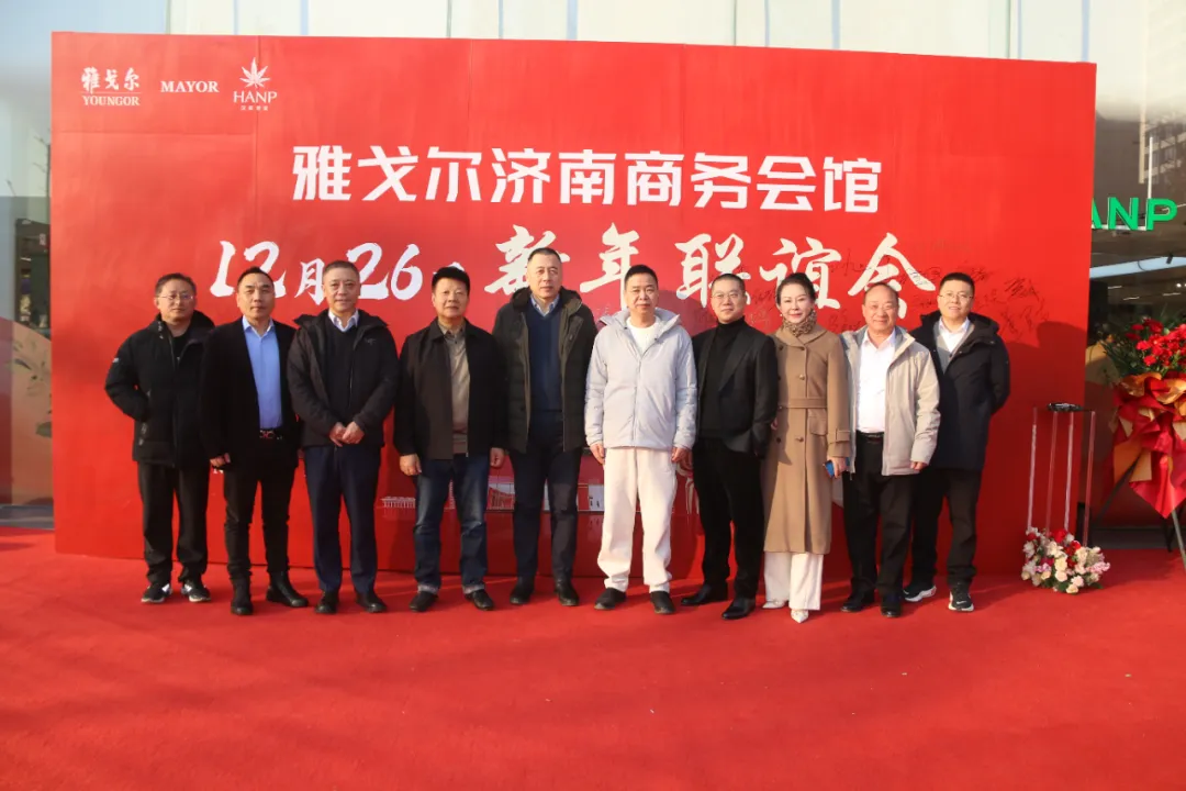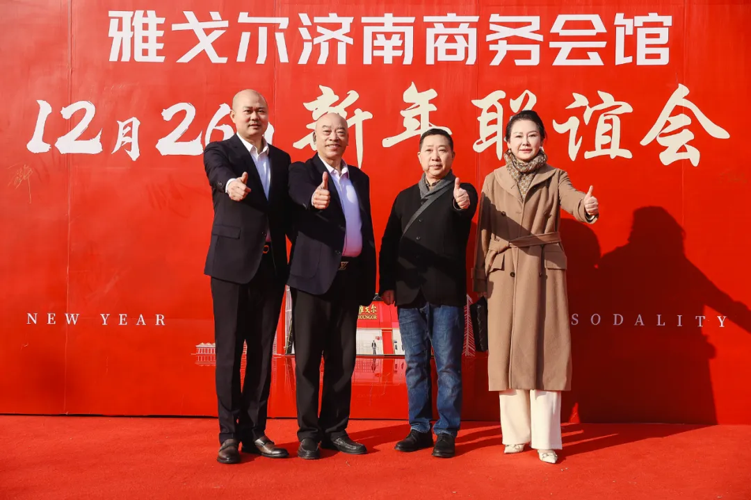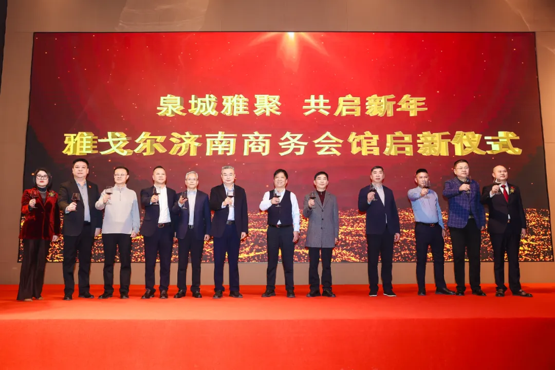 儀式環節:雅戈爾集團董事長李如成,浙江省工商聯原副書記蔡曉春,人民日報社山東分社原社長徐錦庚,建行山東省分行副行長包建軍,銀座集團股份有限公司總經理羅逸賢,山東省浙江商會會長、上海悅來港集團董事長杜利峰,寧波經促會山東會長、山東省寧波商會會長江旭東,濟南婚姻協會會長孟一兵等12位嘉賓共同開啟“泉城雅聚,共啟新年”雅戈爾濟南商務會館啟新儀式。徐錦庚、江旭東現場致辭。