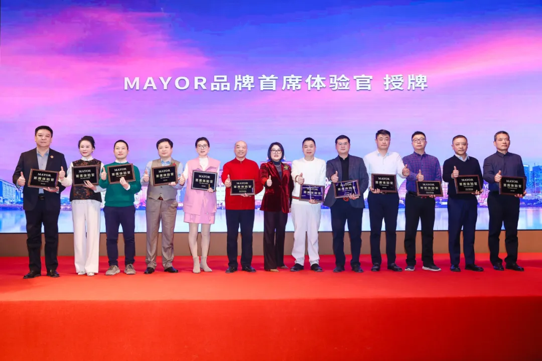 濟南婚姻協會會長孟一兵,山東省浙江商會黨支部副書記、執行秘書長徐秀梅,菏澤市浙江(溫州)商會執行會長王壽華,山東省浙江商會常務副會長蔣加良,副監事長鄭成克,副會長王洪波,山東省寧波商會秘書長胡濱等12位嘉賓受聘擔任“MAYOR品牌首席體驗官”,MAYOR品牌總經理陸萍現場授牌。
