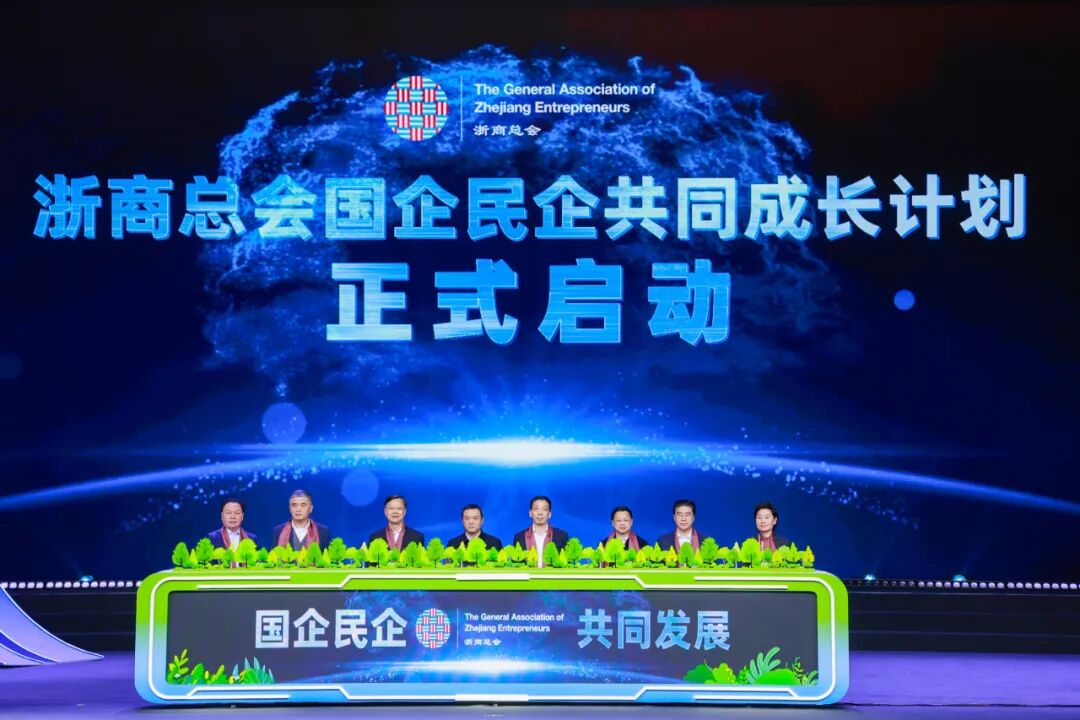 浙江省國(guó)資委黨委委員、副主任童海桑,浙江省工商聯(lián)黨組成員、副主席林建良,杭州鋼鐵集團(tuán)有限公司黨委書(shū)記、董事長(zhǎng)章建成,省旅游投資集團(tuán)有限公司黨委書(shū)記、董事長(zhǎng)倪震,省農(nóng)村發(fā)展集團(tuán)有限公司黨委書(shū)記、董事長(zhǎng)吳高平,康恩貝集團(tuán)有限公司董事長(zhǎng)胡季強(qiáng),森馬集團(tuán)有限公司董事長(zhǎng)邱光和,中廣核俊爾新材料有限公司創(chuàng)始人陳曉敏共同啟動(dòng)《浙商總會(huì)國(guó)企民企共同成長(zhǎng)計(jì)劃》。