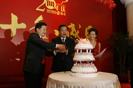 宴會開始后,章鵬飛董事長切開“現代”20歲生日蛋糕,與嘉賓們一起分享成功和喜悅。