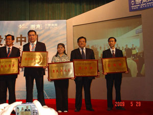浙江省委副書記、省長呂祖善,省政協主席周國富,省委常委、秘書長李強,省人大常委會副主任馮明,國務院發展研究中心副主任侯云春等出席大會。大會由副省長茅臨生主持。會上,與會領導為“2009浙商創新大獎”、“2009浙商社會責任大獎”、“2009浙商全國500強”等5個獎項的獲得者頒獎。我會常務副會長金位海、副會長杜利峰分別榮獲“2009浙商社會責任獎”和“2009浙商創新獎”。 在我會推薦下,山東省濟寧市和滕州市憑借城市自身經濟社會發展和投資環境等優勢,分別榮獲“2009浙商(省外)最佳投資城市”和“2009浙商(省外)投資潛力城市”。濟寧市副市長江成、滕州市政府副秘書長、市外經貿局(招商局)局長李廣耀等領導到會領獎。絲綢之路控股集團有限公司董事長凌蘭芳宣讀了《轉型升級 逆勢超越》的浙商倡議書。