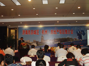 歷城區常務副區長孫斌主持推介會。吳承丙區長致歡迎詞,吳區長希望廣大浙商能到濟南歷城考察投資,爭取實現歷城區和廣大浙商企業的共同發展和雙贏。區發改委主任李成華介紹了歷城區基本經濟發展情況,參會人員觀看了歷城區宣傳片。會上推出了唐冶新區和二環東路隆起帶輻射的一大批具有廣闊前景的重量級地產開發合作項目。