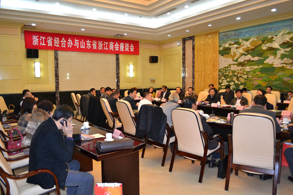 30日下午“浙江省經合辦與山東省浙江商會座談會”在山東大廈東營廳召開。章鵬飛會長在致辭中,首先代表商會對浙江省經合辦姚主任一行代表浙江省委省政府來看望在魯浙商和浙江省經合辦多年來對我會工作給予的大力關心和支持表示感謝。章會長介紹了商會從籌建自今的建設發展情況,浙商在魯投資情況以及商會在文化交流方面所作的工作,商會多次在杭州、濟南組織浙魯書畫名家交流筆會。日前,商會和現代聯合集團在濟南成功舉辦了“第23屆世界模特小姐大賽國際總決賽現代最佳形象獎”頒獎晚會。商會八周年慶典時,還將舉辦杭州小百花來濟大型演出活動。章會長表示在浙江省經合辦、山東省發改委的指導幫助下,把浙江商會建設成為最具生機和活力的商會之一,團結帶領廣大浙商推進全國浙商營銷網絡建設,協調服務好浙商投資山東,同時引導浙商反哺家鄉回歸發展。