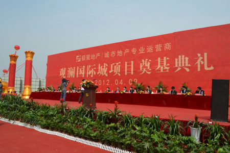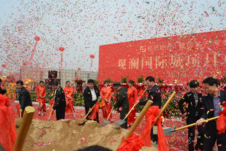 4月9日,由商會(huì)常務(wù)理事單位極策地產(chǎn)投資開發(fā)的觀瀾國(guó)際城項(xiàng)目開工奠基儀式在聊城莘縣風(fēng)光秀麗的徒駭河畔隆重舉行。聊城市軍分區(qū)司令員李昌平,副市長(zhǎng)任曉旺,莘縣縣長(zhǎng)張國(guó)洲、副縣長(zhǎng)于豪勝,浙江樂(lè)清市市長(zhǎng)林培根出席了此次奠基活動(dòng)。商會(huì)副秘書長(zhǎng)楊易成及聊城分會(huì)、常務(wù)理事單位、理事單位代表前往祝賀,并參加了莘縣投資環(huán)境說(shuō)明會(huì)。